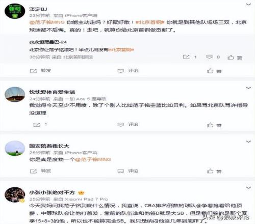 你可是北京顶薪球员!范子铭4中0得0分3犯多次在场隐身遭球迷热议