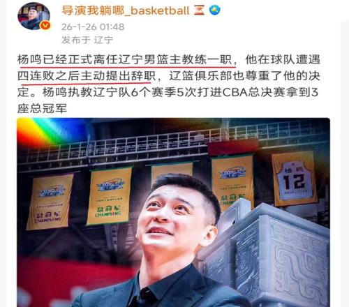 忍无可忍!带领辽宁队夺取3连冠的杨鸣,正式提出辞职,要与辽宁队说再见!