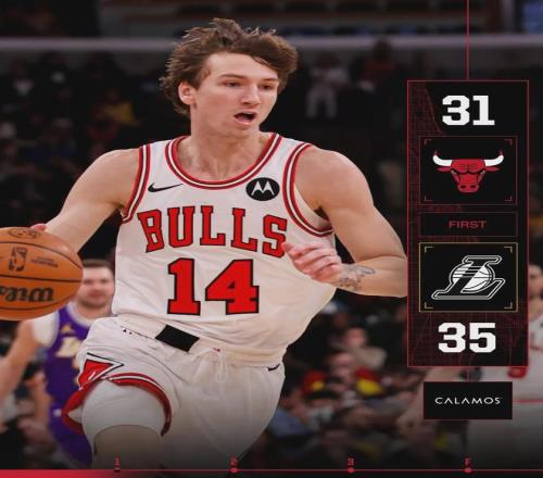 公牛核心约什-吉迪刚复出打了两场,有出场时间限制,今天继续替补出战。截至今天赛前,湖人27胜17负排名西部第5,公牛23胜22负排名东部第9。说回比赛,第一节湖人火力全开,东契奇单节14分4助攻,詹姆斯单节8分进账。 公牛本来防守就不行,上半场打得更是毫无活力,根本没人退防。好在公牛第一节命中不错,杰伦-史密斯单节4中4砍下10分。第一节打完,湖人35-31领先公牛4分。第二节詹姆斯带着湖人替补扩大领先优势,詹姆斯单节再砍12分。
